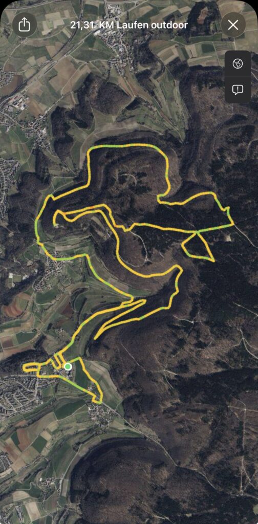 Der Screenshot täuscht, denn so frei von Schnee bekommt man die Ostalb derzeit nicht zu sehen. Aber ich hielt mich an meine kürzlich ausgetüftelte („perfekte“) Halbmarathon-Strecke. Unterwegs sah es eher so aus: